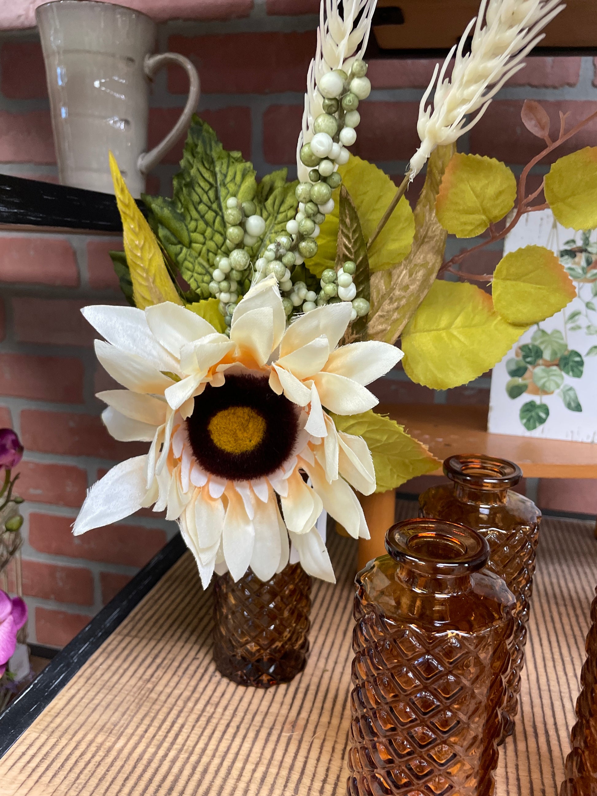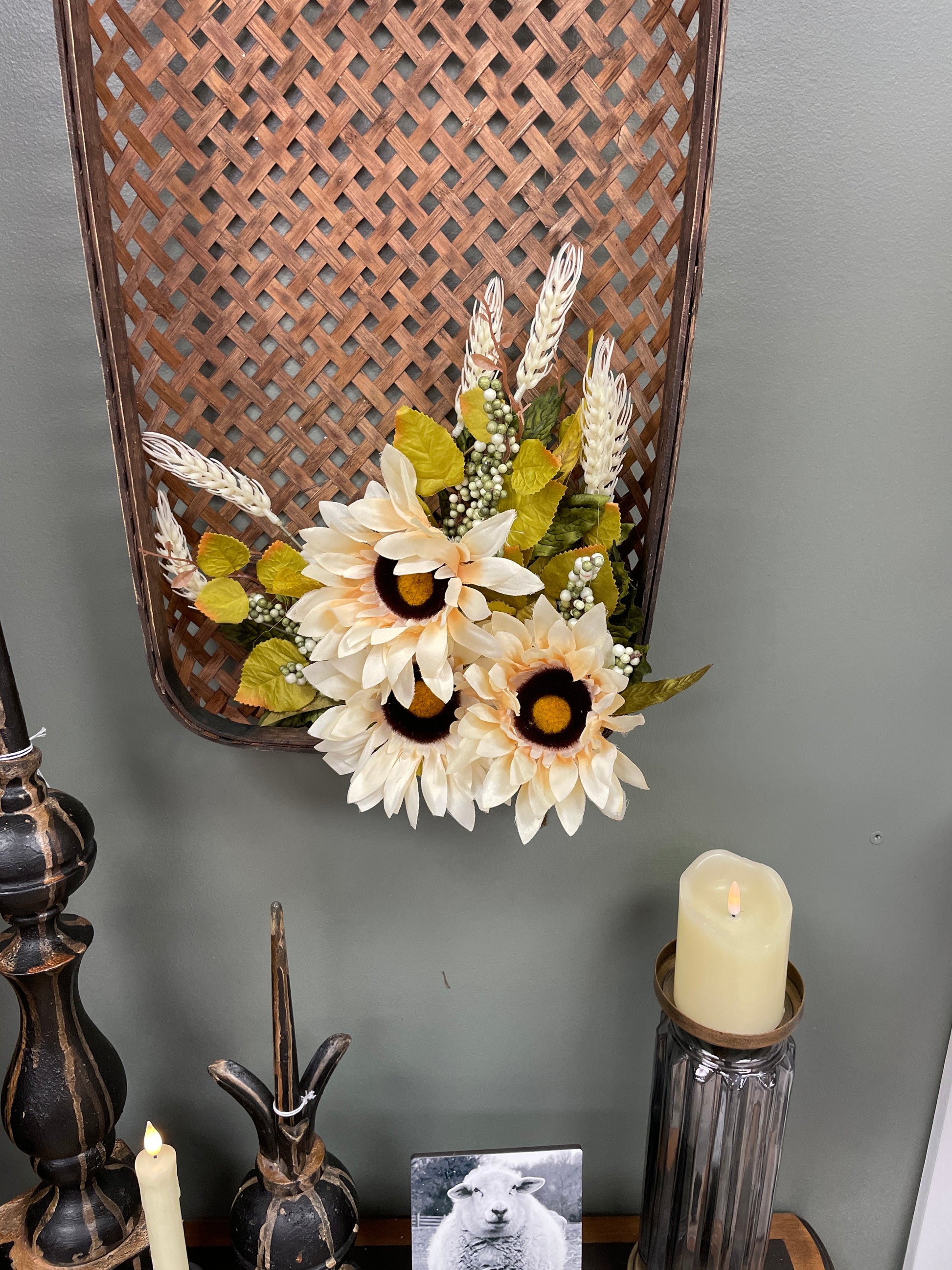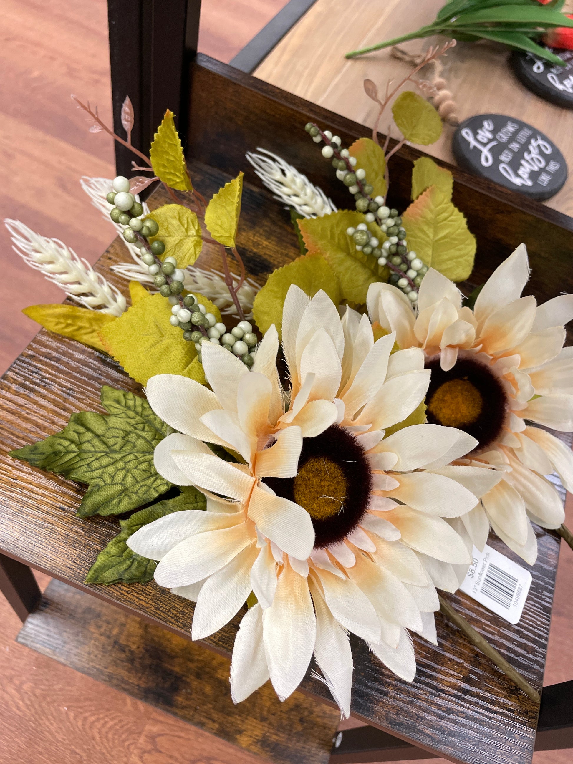 Get ready to add a 'pick' me up to your home decor with our 13" Sunflower Pick! Bringing together a beautiful sunflower, wheat stem and a touch of berries, this pick will bring a vibrant and natural element to any space. Brighten up your day with this quirky and playful addition!