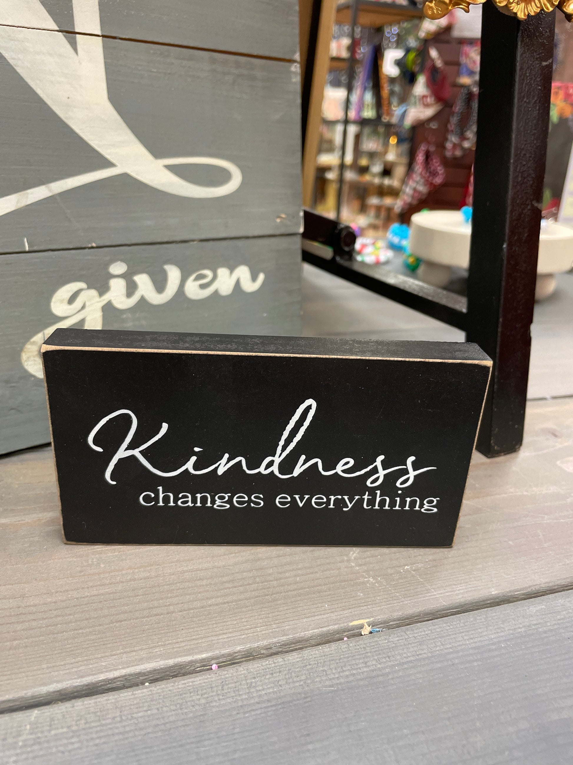 Kindness Changes Everything – a charming wooden block that spreads positivity wherever it sits. Perfect for desks, shelves, and nightstands, this cheerful reminder encourages daily acts of compassion. Whether you're decorating your home office or gifting a friend who needs a little inspiration, this shelf sitter brings warmth and motivation to any space. A simple yet meaningful way to keep kindness front and center.