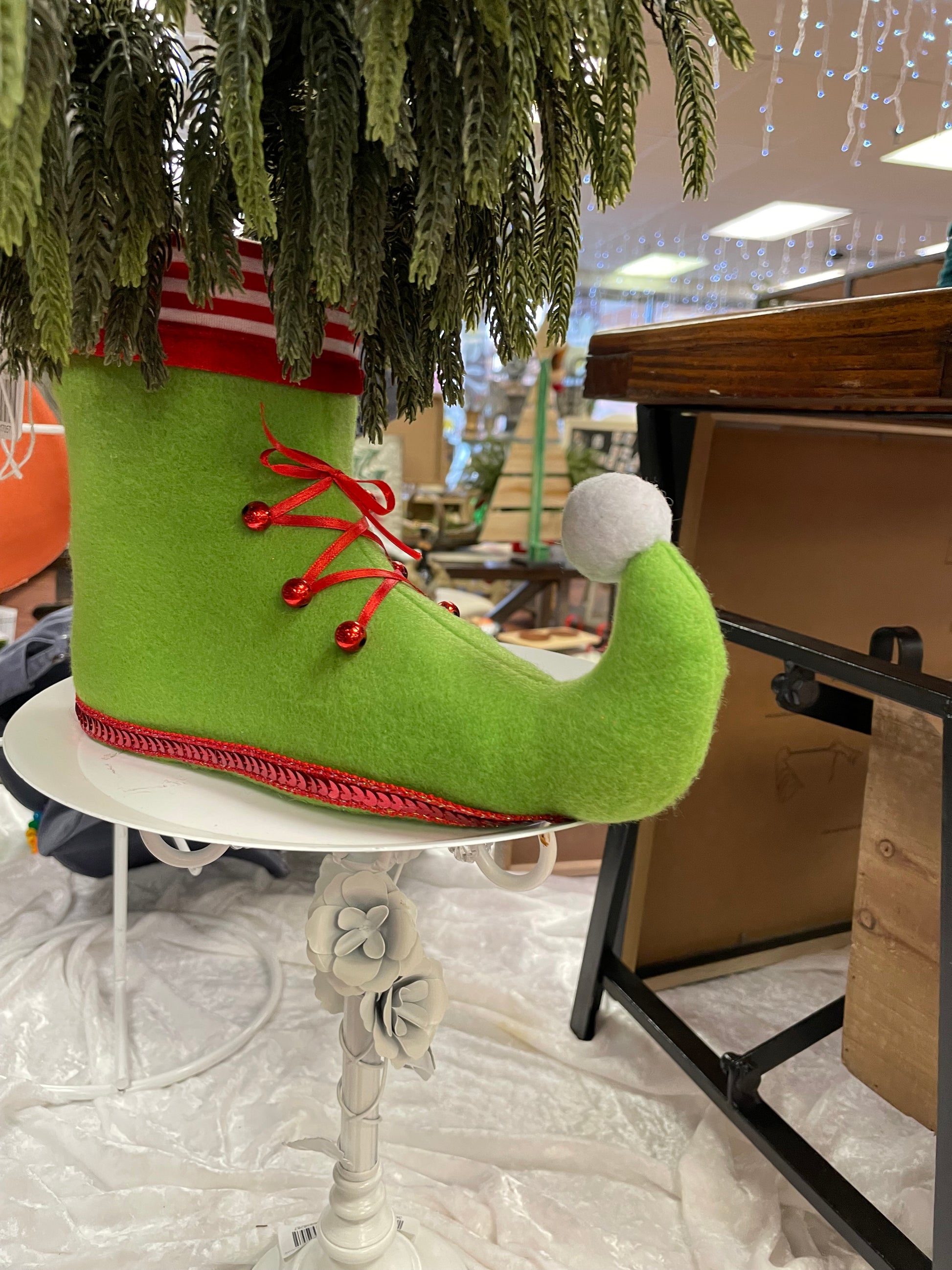 Display festive flair with this oversized red elf shoe—a whimsical vessel designed to showcase your favorite faux floral arrangements. Its generous size accommodates full bouquets and greenery, making it an eye-catching focal point on any shelf. The cheerful crimson finish pairs beautifully with seasonal décor or year-round styling, while the playful silhouette adds personality to living rooms, offices, or event spaces. Transform this quirky planter into a conversation starter that brings holiday spirit and imaginative charm to your home.