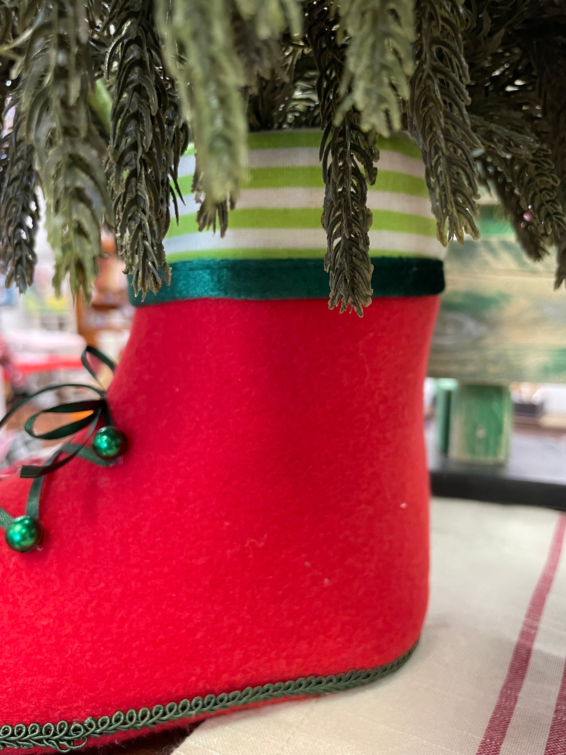 Bring a touch of whimsy to your shelves with this charming elf shoe planter! Perfect for organizing small succulents, herbs, or decorative botanicals, this delightful piece doubles as functional decor. Its vibrant red hue adds a pop of color to any room, while the playful design sparks joy and conversation. Whether you're styling a bookshe