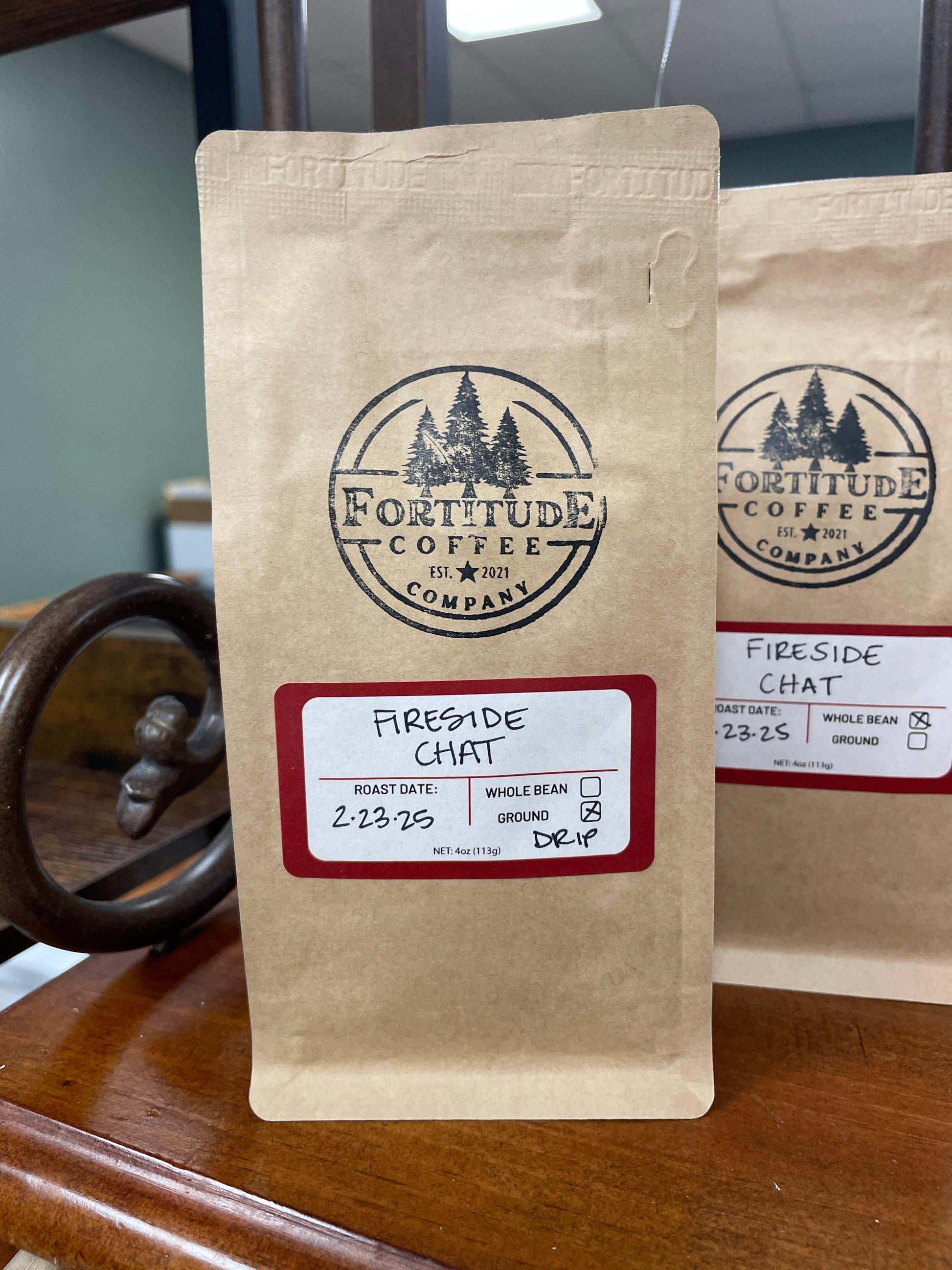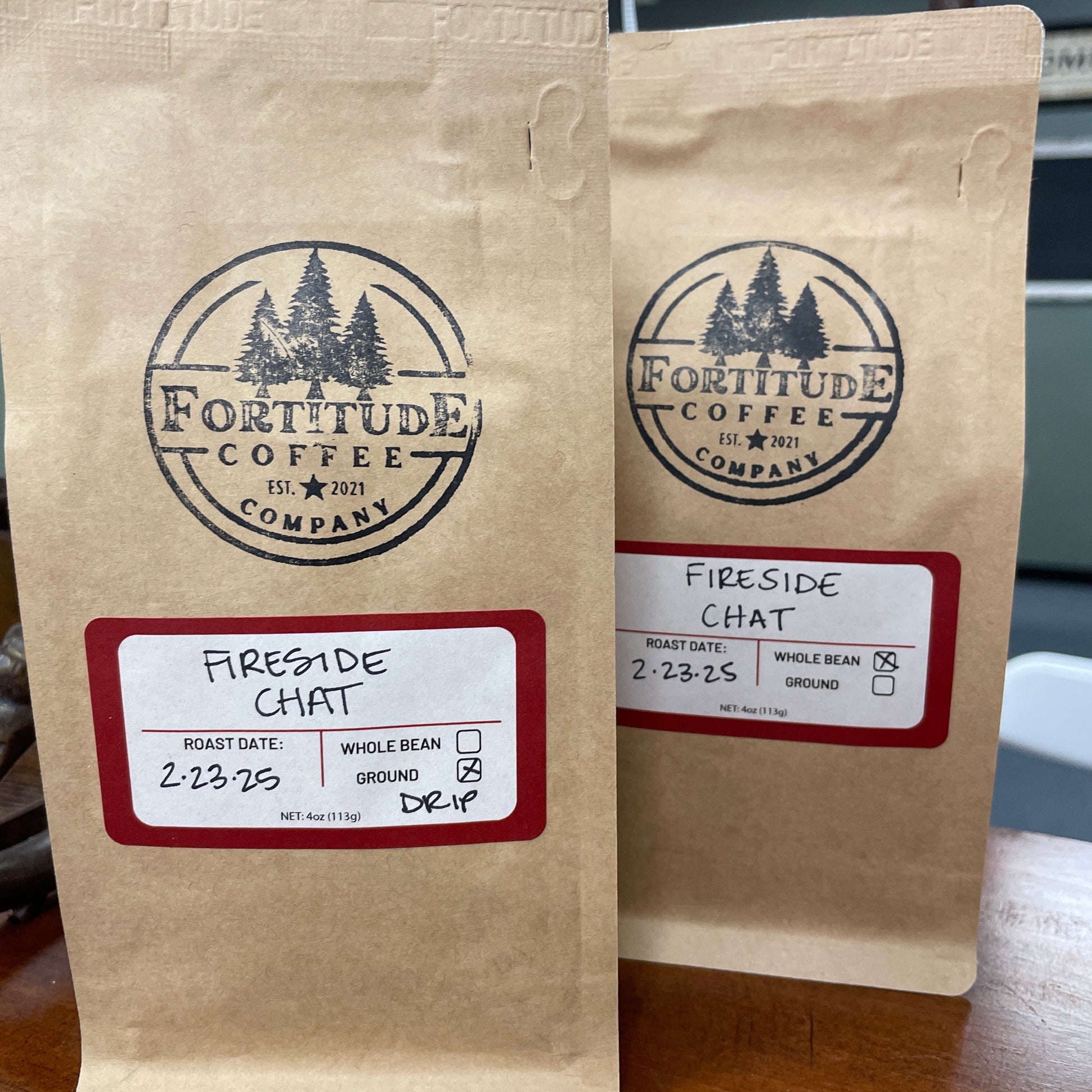 4 oz Sampler Bag of Fortitude Coffee's Fireside Chat Coffee. Available in Ground or Whole Bean.