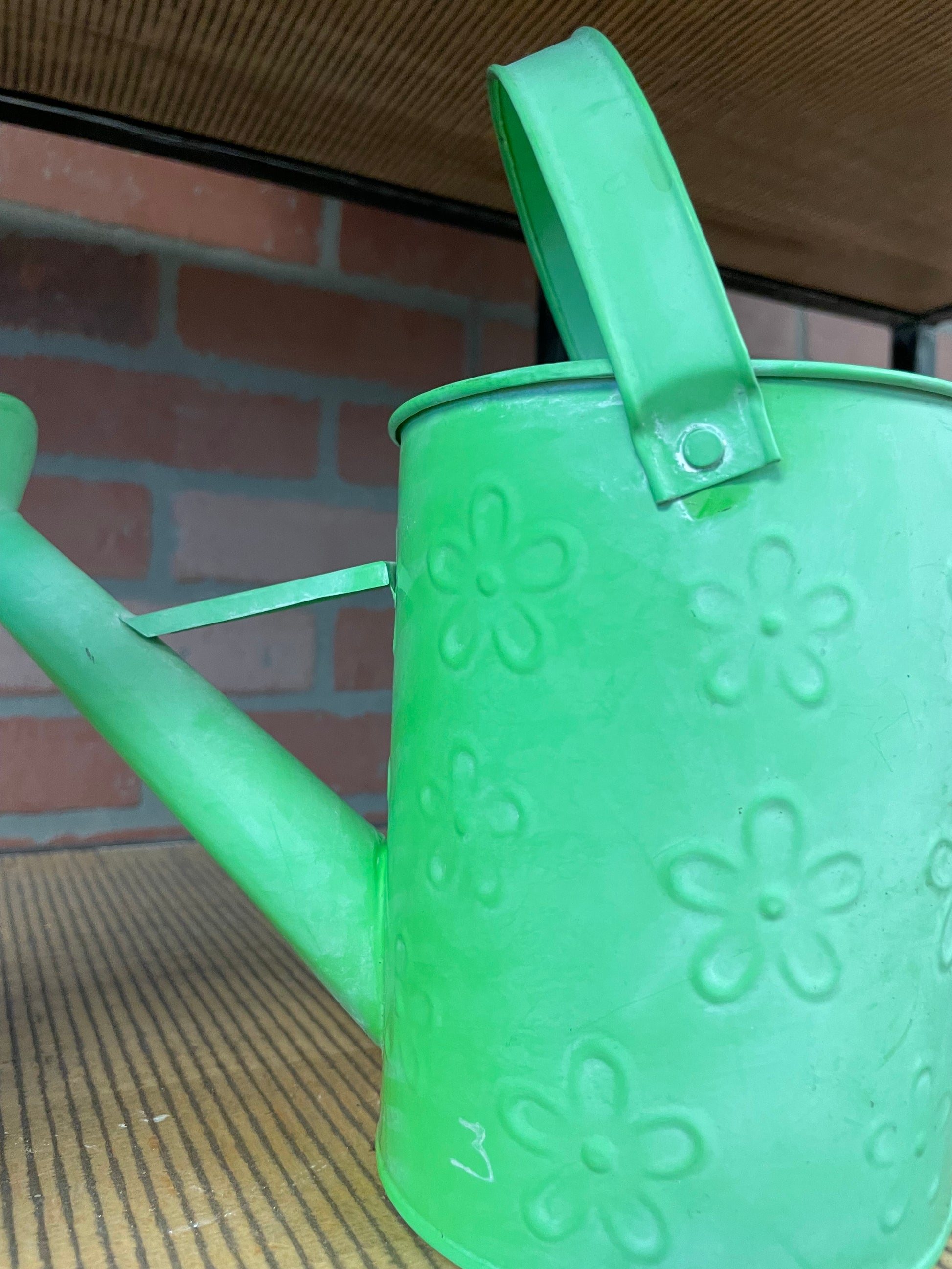This metal Green watering can features a swing handle, making it easy to carry and pour water onto your plants. Its small size is perfect for indoor use. (Water your plants in style with this fun green watering can! Swing it around with ease for ultimate convenience.)