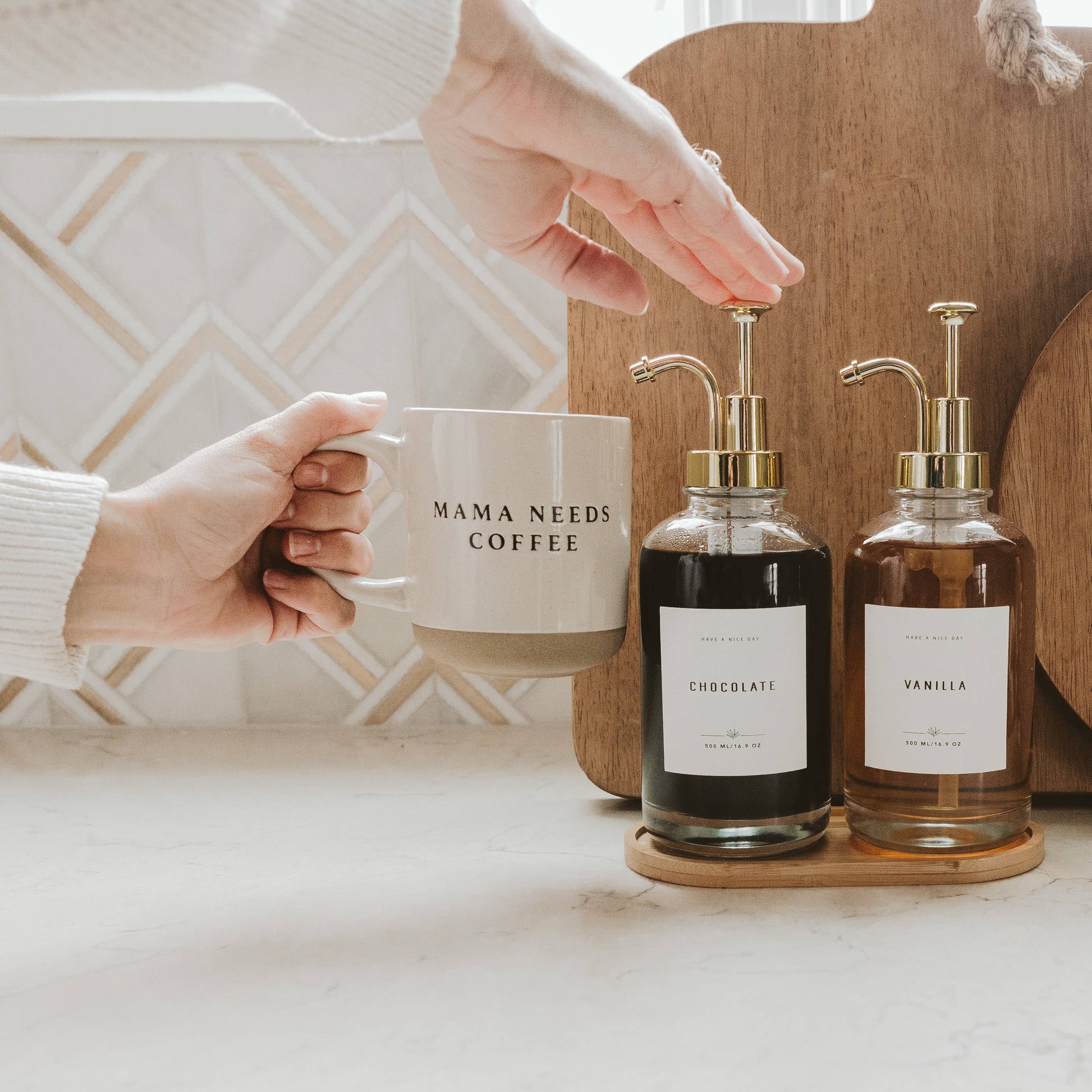 DETAILS: • 14oz Stoneware Style Mug • Size: 3.31 x 3.93" (5.19" w/handle) • Original Design: Mama Needs Coffee • Design on Both Sides of Mug • Cream With Black Lettering • Speckled Design with Natural Bottom Details • Each piece is hand-crafted, making the character of each mug perfectly unique. There may be slight variations.