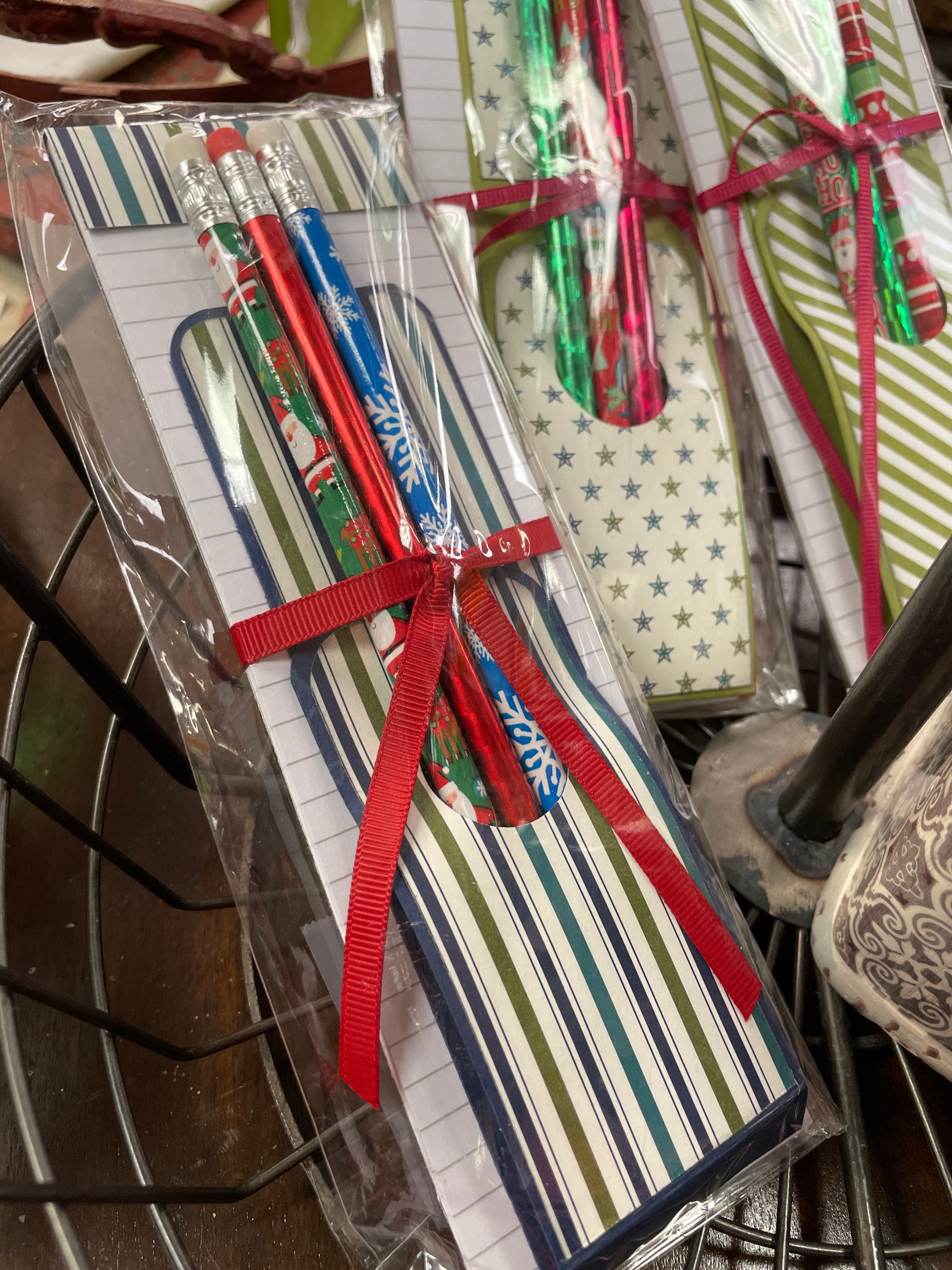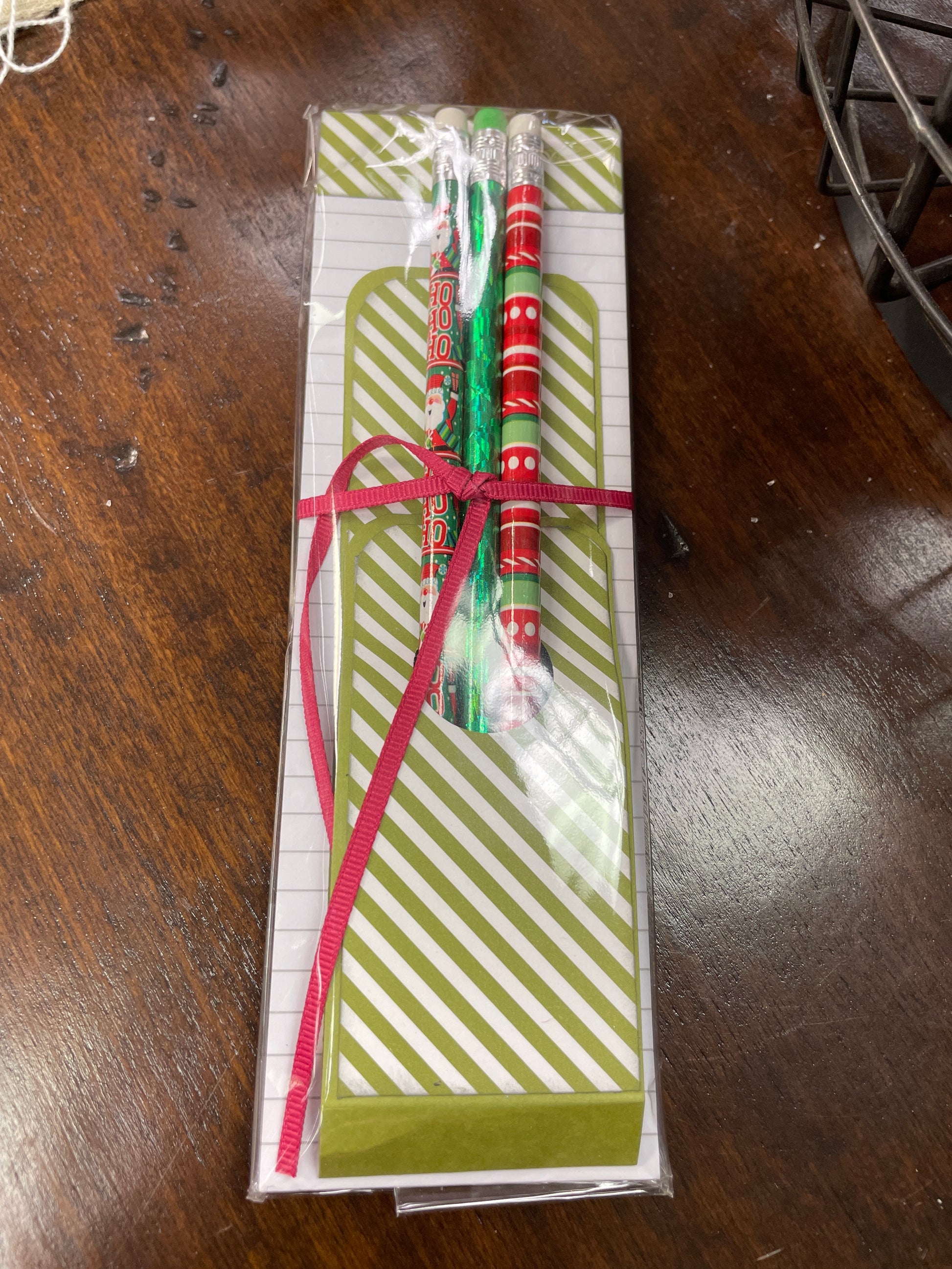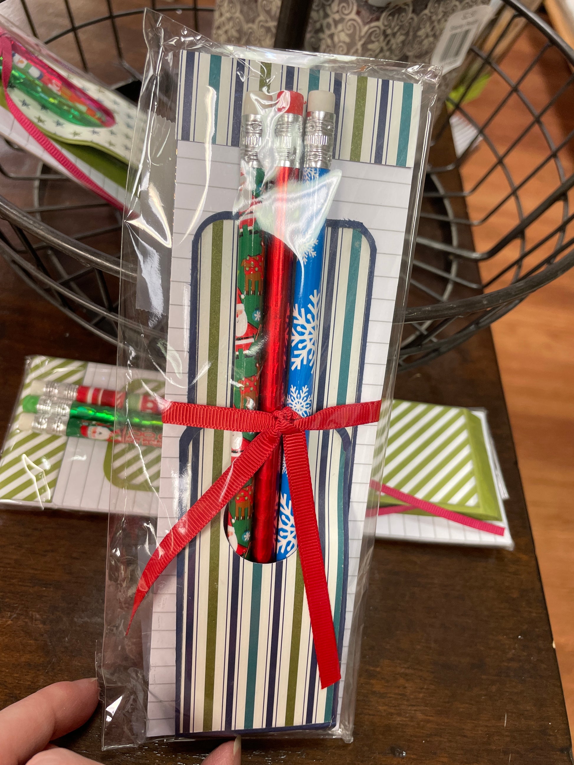 Sharpen your holiday spirit with this delightful trio of handcrafted Christmas pencils paired with a coordinating list pad. Perfect for jotting down gift ideas, holiday to-dos, or festive notes, this charming set makes an ideal stocking stuffer or small gift for the organized creative in your life. Spread seasonal cheer with every stroke!