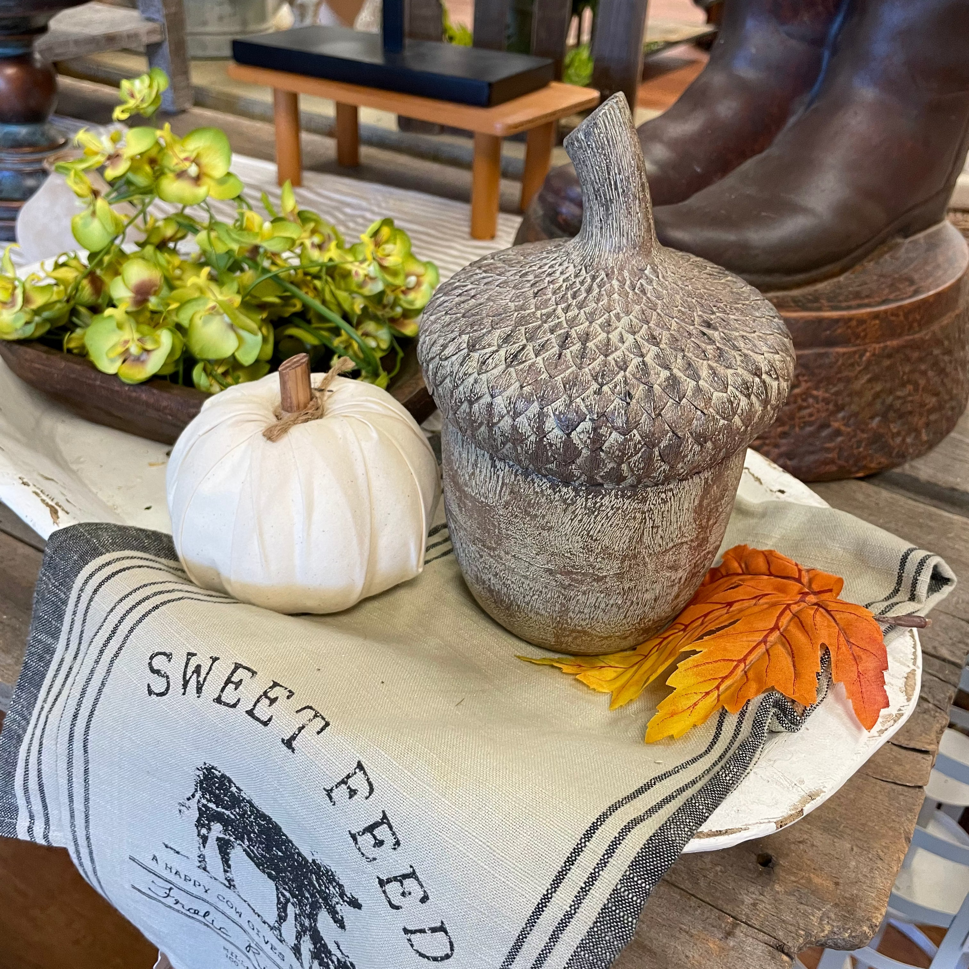 Bring a touch of whimsy to your fall decor with this larger-than-life Acorn. Perfect for both indoor spaces and covered outdoor areas, its durable resin build ensures it withstands the season’s charm. Add a playful, oversized accent that celebrates autumn’s cozy spirit with effortless style.