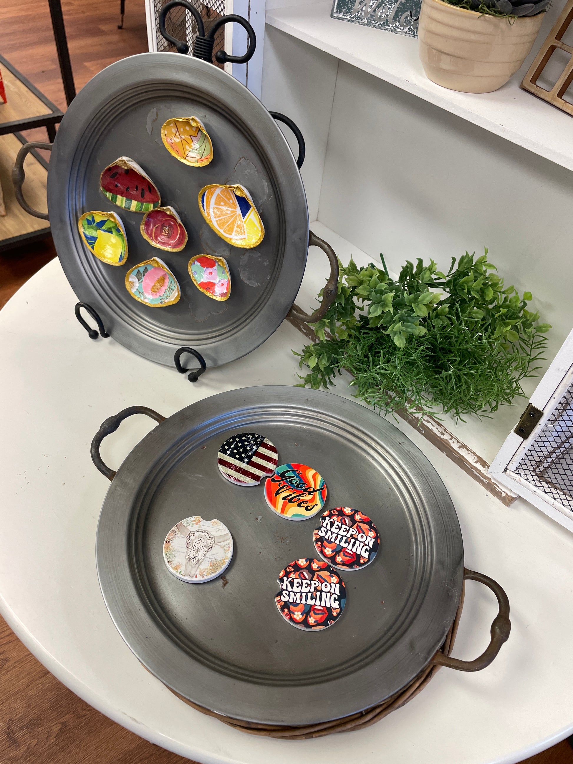 Round Metal Tray with Handles