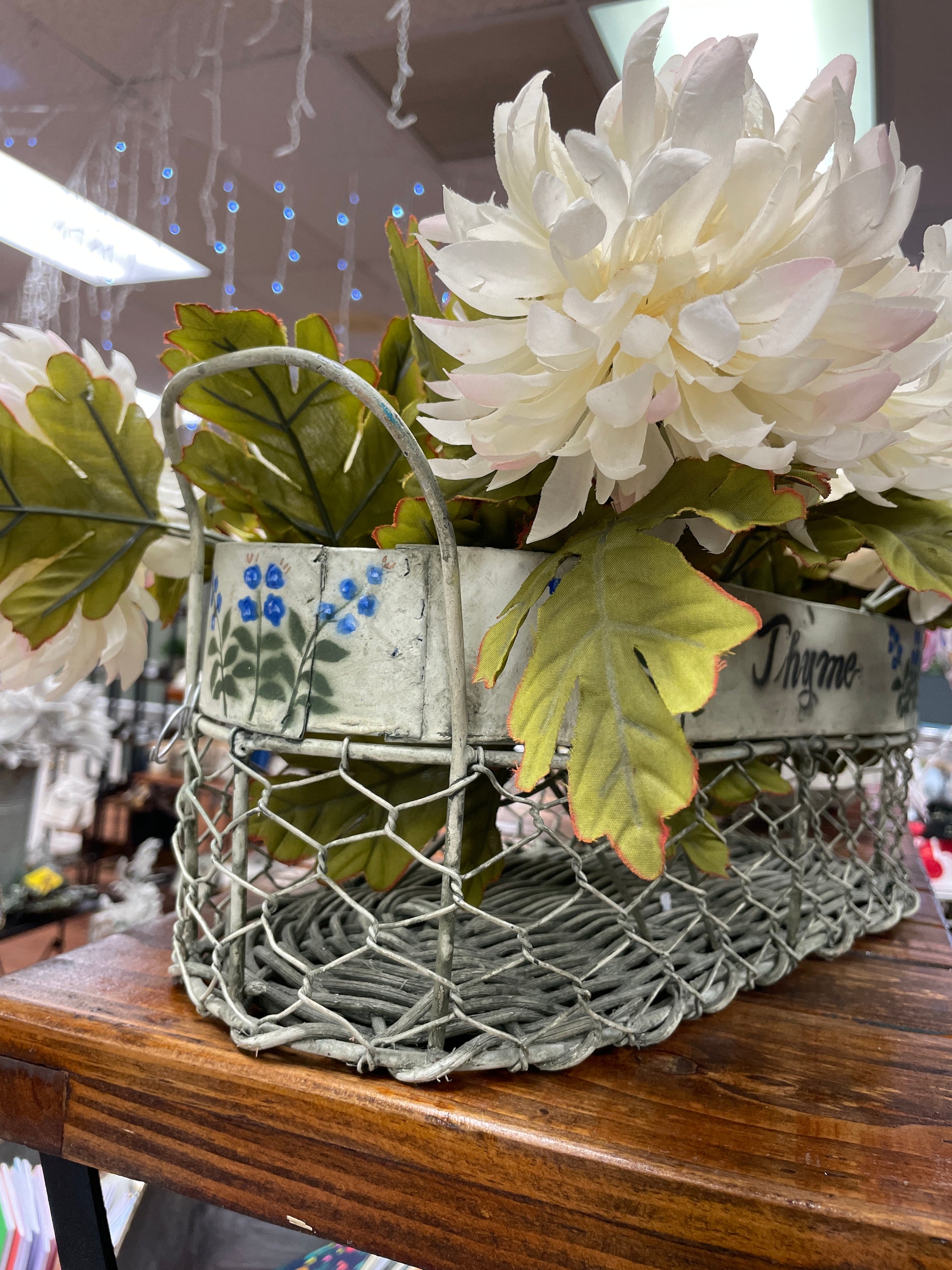 Spice up your home with our Thyme Wire Basket! This gorgeous basket is perfect for storing kitchen towels, florals, plants, and any other items you need while adding a touch of spring and summer to your decor. Get organized and add some flair to your space with our charming Thyme Wire Basket!
