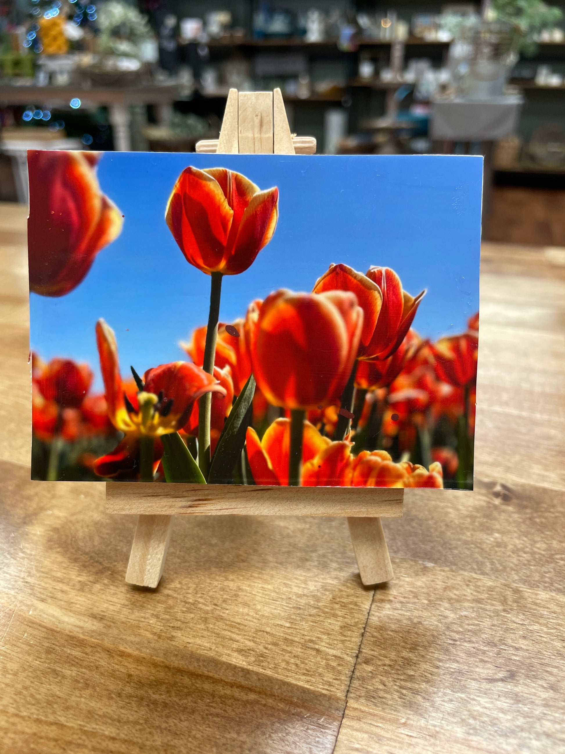 Tiny Easel to display the 4 x 3" Canvas of gorgeous Red Tuplips from the local Burnside Farms in Nokesville.