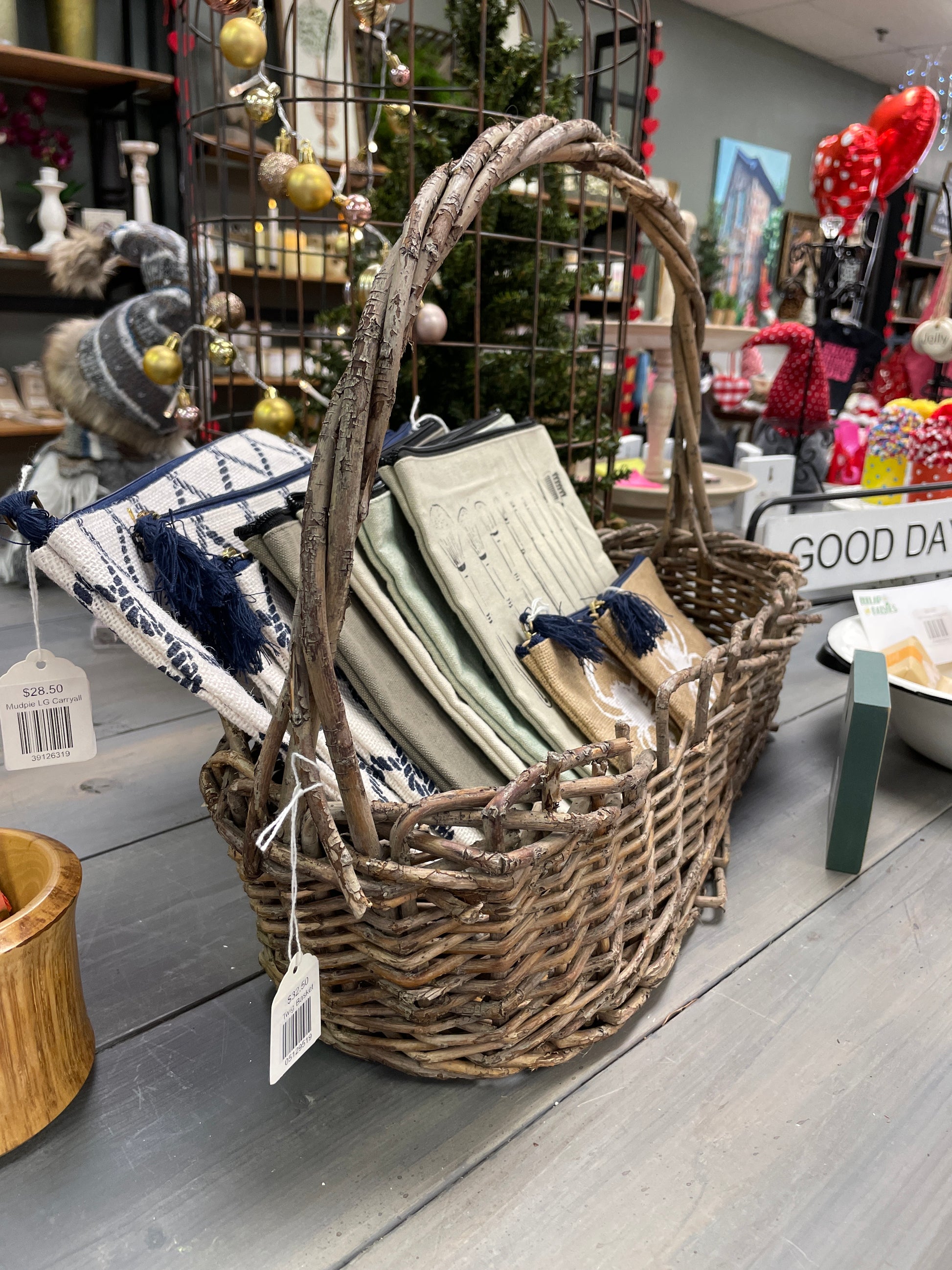 Bring a touch of nature into your home with our Twig Basket! Delicately made of twigs, this rectangular basket measures 22" long and 16" high, and features a beautifully woven handle, although I wouldn't recommend for carrying. Perfect for displaying indoors or out, this versatile piece adds a rustic charm to any space. (Leaf the worrying to us, we've got you covered with this nature-inspired basket!)