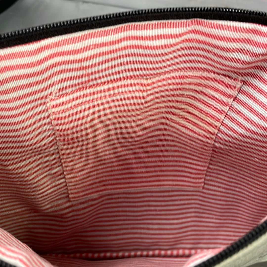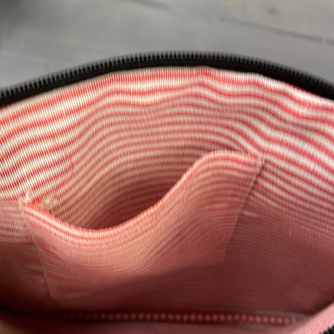 Handmade by skilled Indian craftspeople, this versatile bag measuring 11" wide and 9 1/2" is perfect for all your travel, makeup, and storage needs. Use it for your backpack, notebooks, kindles, and more. Stay organized and stylish on the go! (zip it up and zip around!)